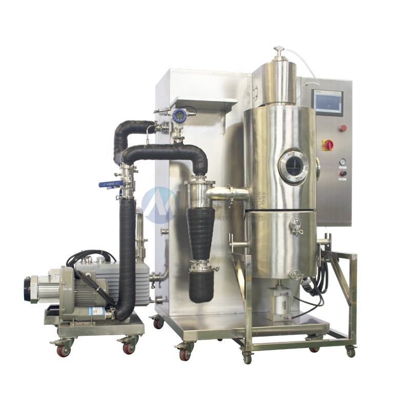 1、實驗型噴霧冷凍干燥機把噴霧干燥和真空冷凍干燥二者有機的結合起來,所需的干燥時間極短,縮短了傳統的真空冷凍干燥時間,且干燥后的物料為粉狀的固體,經噴霧冷凍干燥的物品,原有的生物、化學特性基本不變,易于長期保存,加水后能恢復到凍干前的形態,并且能保持其原有的生化特性